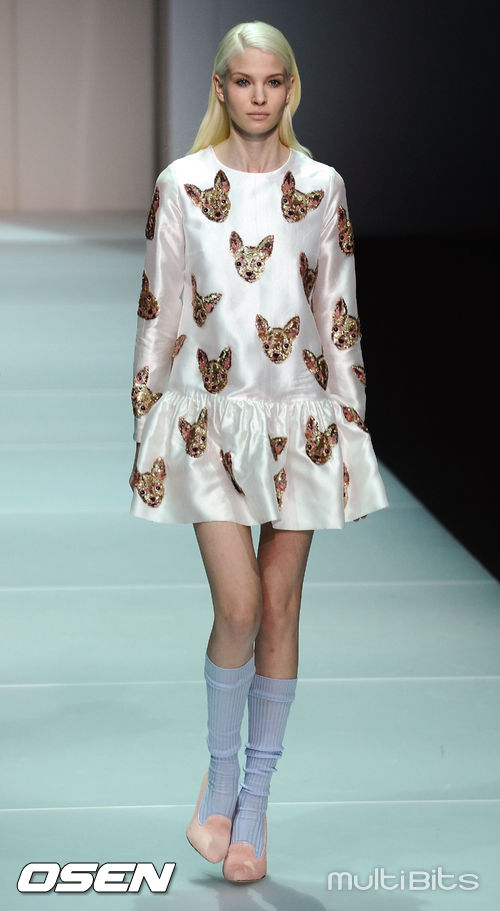 [OSEN/WENN 특약] 22일(현지시간) 이탈리아 밀라노에서 열린 '밀라노 패션위크 A/W 2014-아 주르 르 주르'런웨이에서 한 모델이 캣 워크를 하고 있다.