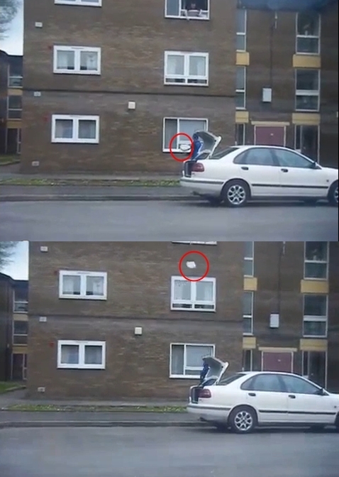 이 영상에는 그동안 보지 못했던 새로운 피자 배달 방법이 등장한다. 바로 창문을 통해 던지는 것.