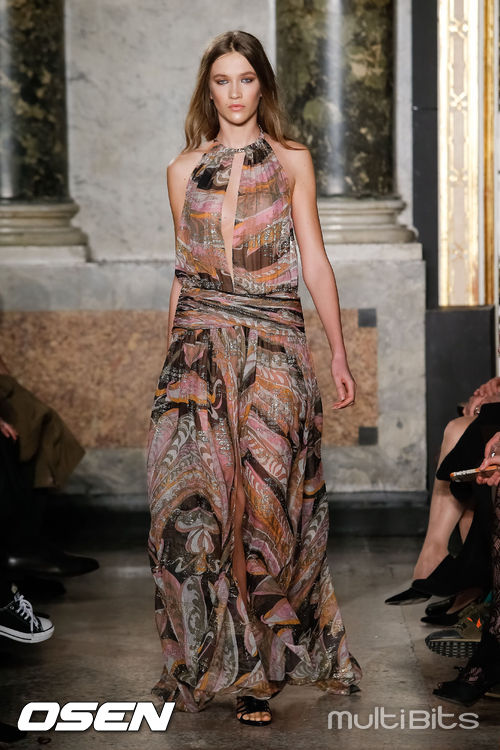 [OSEN/WENN 특약] 22일(현지시간) 이탈리아 밀라노에서 열린 '밀라노 패션위크 A/W 2014-애밀리오 푸치'런웨이에서 한 모델이 캣 워크를 하고 있다.