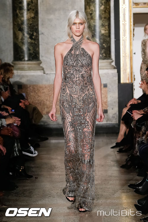 [OSEN/WENN 특약] 22일(현지시간) 이탈리아 밀라노에서 열린 '밀라노 패션위크 A/W 2014-애밀리오 푸치'런웨이에서 한 모델이 캣 워크를 하고 있다.