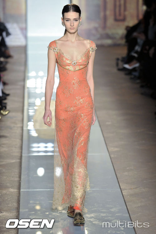[OSEN/WENN 특약] 23일(현지시간) 이탈리아 밀라노에서 열린 '밀라노 패션위크 A/W 2014-로코바로코'런웨이에서 한 모델이 캣 워크를 하고 있다.