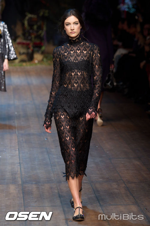 [OSEN/WENN 특약] 23일(현지시간) 이탈리아 밀라노에서 열린 '밀라노 패션위크 A/W 2014-돌체 가바나'런웨이에서 한 모델이 캣 워크를 하고 있다.