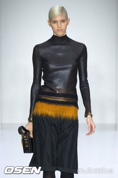 [OSEN/WENN 특약] 23일(현지시간) 이탈리아 밀라노에서 열린 '밀라노 패션위크 A/W 2014-살바토레 페라가모'런웨이에서 한 모델이 캣 워크를 하고 있다.
