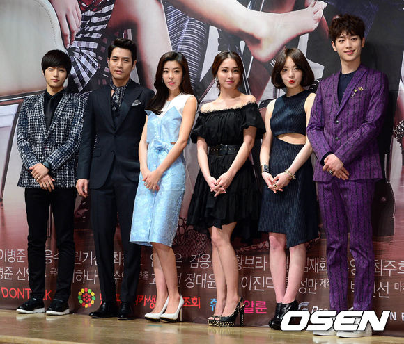 24일 오후 서울 역삼동 라움에서 열린 MBC 새 수목드라마 '앙큼한 돌싱녀' 제작발표회에서 (왼쪽부터)엘, 주상욱, 김규리, 이민정, 황보라, 서강준이 포토타임을 갖고 있다.