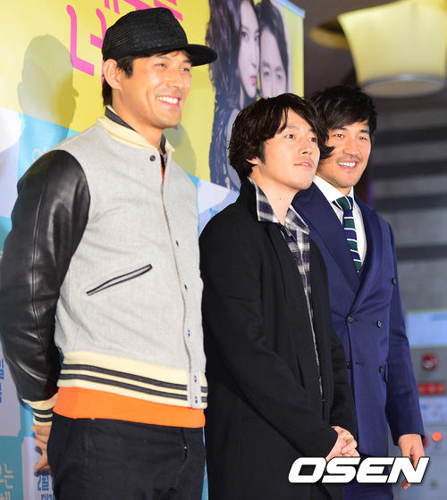 배우 오지호, 장혁, 한정수가 시사회에 참석해 포토타임을 갖고 있다.