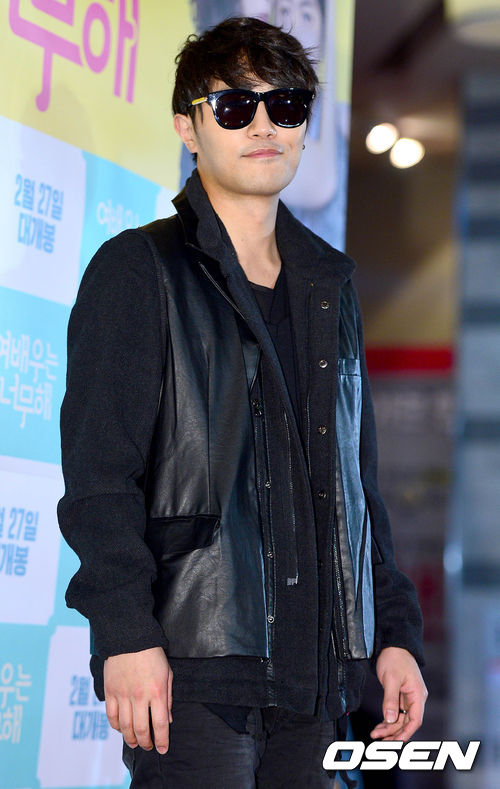 배우 진구가 시사회에 참석해 포토타임을 갖고 있다.