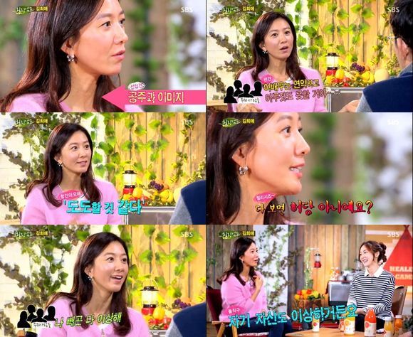 김희애는 24일 오후 방송된 SBS 예능프로그램 '힐링캠프-기쁘지 아니한가(이하 '힐링')'에서 "도도한 이미지로 생각을 하시는데 누구나 허당의 모습은 있지 않나"라고 말했다.