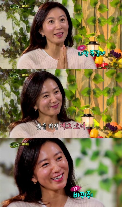 한편 이날 김희애는 10대에 연예계에 데뷔, 여배우라는 타이틀로 살아온 인생 스토리를 허심탄회하게 털어놨다. 동시에 KBS 2TV 예능 프로그램 '개그콘서트'를 좋아한다며 놀라운 개그감을 뽐내 눈길을 끌었다.