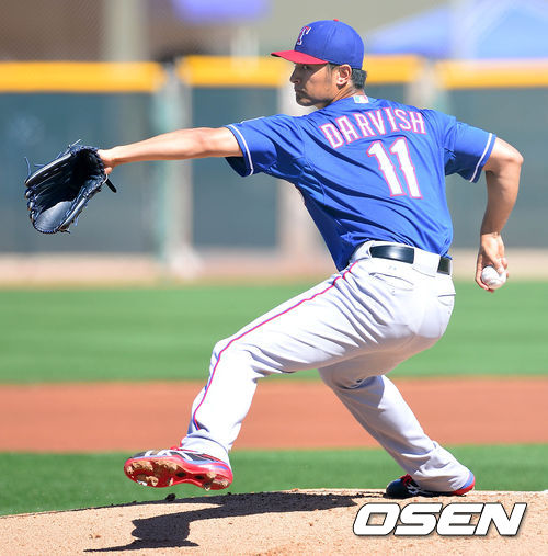 텍사스 다르빗슈 유가 힘차게 공을 던지고 있다.