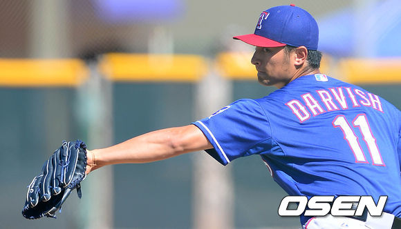 텍사스 다르빗슈 유가 힘차게 공을 던지고 있다.