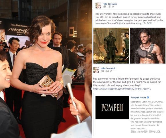 남편인 폴 W.S. 앤더슨 감독을 위해 영화 홍보 지원군을 자처한 것. 국내에서 60만 관객을 돌파하며 흥행 순항 중인 '폼페이: 최후의 날'을 위해 밀라 요보비치가 SNS를 통해 응원 메시지를 전해온 것이다.