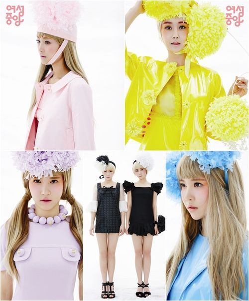 걸그룹 크레용팝이 인형 느낌이 물씬 나는 파스텔톤의 의상과 메이크업을 비롯해 농악대 상모를 연상케 하는 헤드피스와, 시크한 블랙 미니원피스 등으로 이색적인 패션 화보에 도전했다.