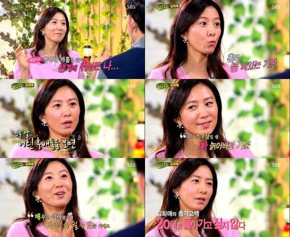 김희애는 지난 24일 밤 방송된 SBS 예능프로그램 '힐링캠프-기쁘지 아니한가(이하 '힐링')'에 출연해 "20대로 돌아가고 싶지 않다"며 운을 뗐다.