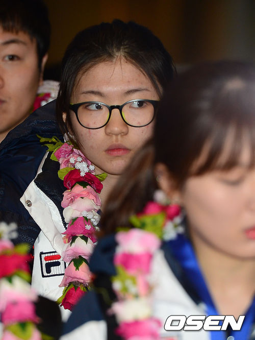 입국장에서 심석희가 박승희 뒤에서 눈치를 보고 있다../ rumi@osen.co.kr