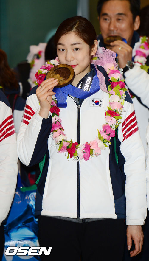 2014 소치동계올림픽에 출전한 한국 선수단 본진이 25일 인천국제공항을 통해 귀국, 인천국제공항 1층 밀레니엄홀 야외무대에서 열린 2014 소치동계올림픽 선수단 해단식 및 2018 평창동계올림픽 대회기 인수 기자회견 행사에 참석했다.