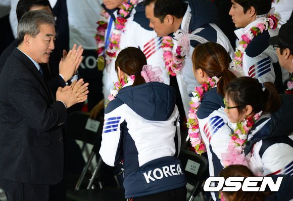 25일 인천국제공항을 통해 제22회 소치동계올림픽대회에 참가한 대한민국 선수단이 입국, 인천국제공항 1층 밀레니엄홀 야외무대에서 해단식을 가졌다.