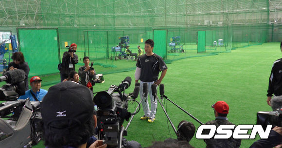 인터뷰는 방송, 신문으로 나뉘어 진행됐다. 많은 방송용 카메라가 돌아가는 가운데 플래시 세례가 이어졌다. 오승환의 이미지가 ‘돌부처’이기 때문에 살며시 미소라도 짓는 순간에는 플래시가 동시다발적으로 터지는 경우도 있었다. 오승환도 성실하고 차분하게 자신의 생각을 설명하며 취재에 임했다.