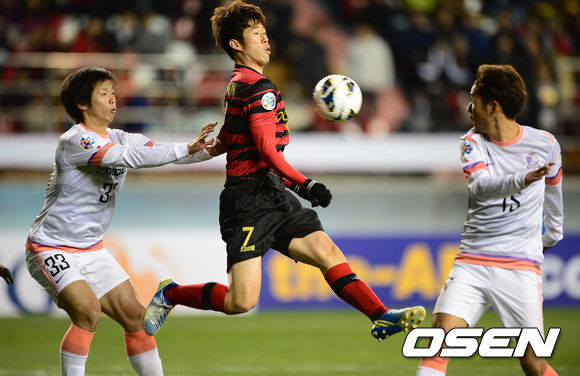 황선홍 감독은 이날 변형 제로톱을 구사했다. 이명주와 김승대를 사실상 투톱에 가까운 위치에 놓고, 좌우 측면엔 고무열과 조찬호를 배치했다. 특히 고무열 이명주 김승대는 수시로 위치를 바꿔가며 기회를 노렸다. 중원에는 김태수와 김재성이 자리했고, 포백 라인은 왼쪽부터 김대호 김광석 김원일 신광훈이 형성했다.