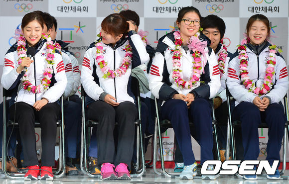 이날 공항에는 귀국한 선수단을 맞이하기 위해 수백 명의 인파가 운집, 소치의 영웅들을 반겼다. 개·폐막식 기수였던 이규혁(36, 서울시청)이 태극기를 들고 무대에 올라서자 선수들의 이름을 연호하는 환호성이 곳곳에서 터져나왔다.