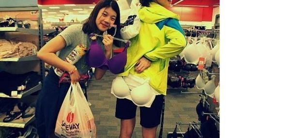 특히 눈길을 사로잡는 사진은 공상정과 심석희의 사진. ‘어마어마한 사이즈를 보고 놀라서 사진을 찍었다’라는 소개와 함께 공상정과 심석희가 여성 속옷을 두고 익살스런 자세를 취했다.