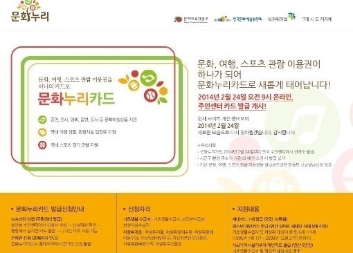 문화누리카드는 가까운 주민센터나 문화누리카드 홈페이지(www.문화누리카드.kr)를 통해 24일부터 선착순으로 발급한다.
