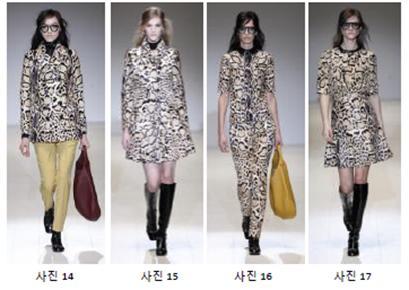 또한, 실크나 송치 소재의 맥시 애니멀 프린트는 트렌치 코트, 더블 버튼 재킷, 셔츠와 한 벌을 이루는 점프수트 팬츠, 미니 드레스 등 다양한 디자인에 사용됐다[사진 14,15,16,17].