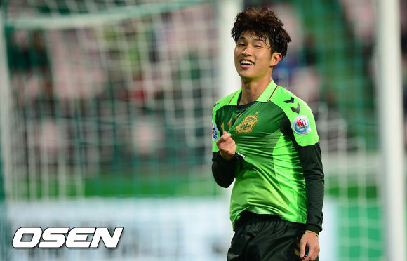 26일 오후 전주월드컵경기장에서 열린 '2014 아시아축구연맹(AFC) 챔피언스리그 조별리그 1차전' 전북 현대와 요코하마 F.마리노스의 경기 후반 이승기가 첫 골을 넣은 후 기뻐하고 있다.