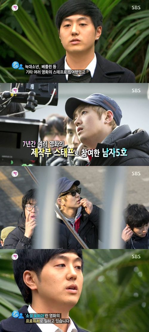 남자5호는 "'늑대소년', '배를린' 등 여러 영화 제작의 스태프로 참여했고 7년간 제작부 스태프로 활동했다"며 "지금은 영화진흥위원회 한국영화아카데미에서 '소셜 포비아'란 영화의 프러듀서로 일하고 있다"고 설명했다.