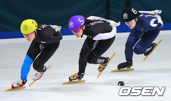 27일 오전 성남 탄천실내빙상장에서 열린 '제95회 전국 동계체육대회' 여자 1500m 일반부에서 (가운데)조해리가 역주하고 있다.