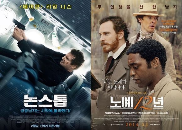 영화 '논스톱', '노예12년' 포스터.