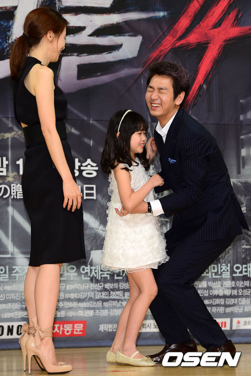 27일 오후 서울 양천구 SBS 목동사옥에서 열린 SBS 월화드라마 '신의 선물-14일(연출 이동훈, 극본 최란)' 제작발표회, 포토타임때 김태우가 김유빈을 안아 올리고 있다.