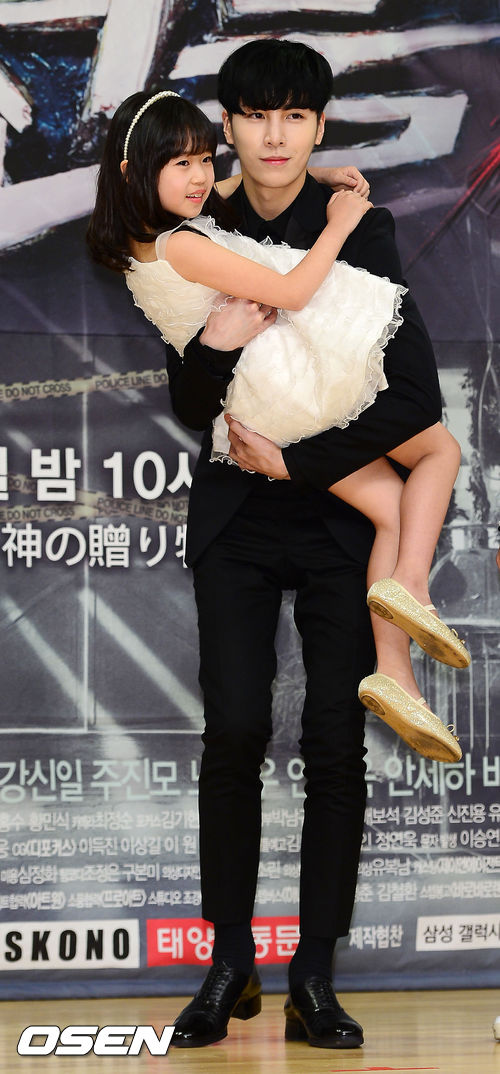 27일 오후 서울 양천구 SBS 목동사옥에서 열린 SBS 월화드라마 '신의 선물-14일(연출 이동훈, 극본 최란)' 제작발표회, 노민우가 김유빈을 안아 올리고 있다.
