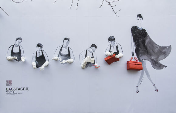 가방의 기본 재료가 되는 실(Thread)을 엮어 ‘0914’의 브랜드 이름을 표현했던 첫 번째 가림막에 이은 두 번째 테마는 가방을 만드는 ‘장인의 손’이다. 핸드백을 만들기 위해 정성을 쏟는 장인의 모습과 완성된 백을 패션 아이템으로 연출한 여성의 이미지를 일러스트와 3D 프린팅 조형물로 표현한 이번 가림막은 일반적인 공사 현장에서는 볼 수 없는 신선함과 재미를 주며 눈길을 끌고 있다.
