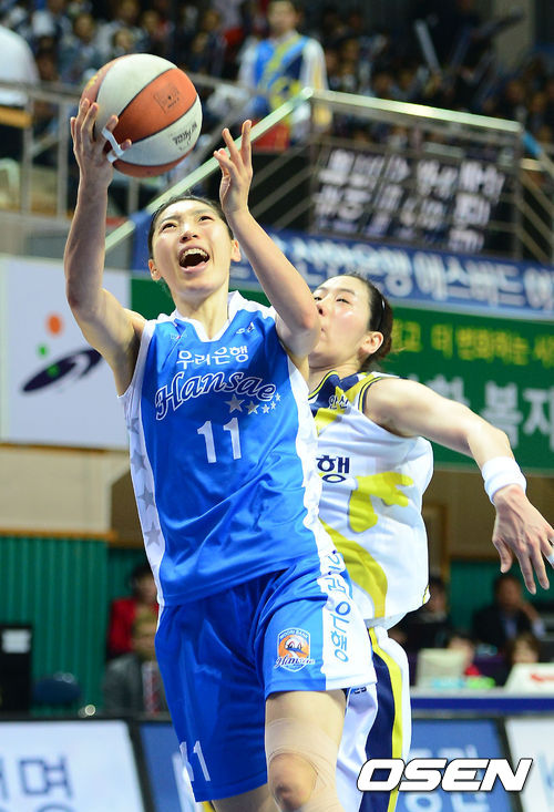 27일 오후 안산 와동실내체육관에서 열린 우리은행 2013-14 여자프로농구 정규리그 6라운드 안산 신한은행과 춘천 우리은행의 경기, 2쿼터 우리은행 임영희가 레이업슛을 시도하고 있다.