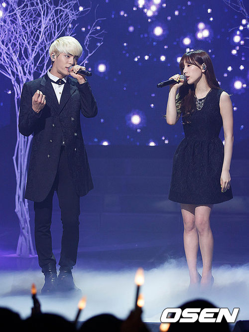 에스엠 더 발라드 종현과 태연이 27일 오후 서울 상암동 CJ E&M에서 진행된 Mnet '엠카운트다운'(이하 엠카) 생방송에서 멋진 무대를 선보이고 있다.