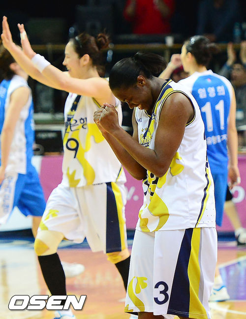 경기를 마치고 신한은행 스트렉린이 기뻐하고 있다. / rumi@osen.co.kr