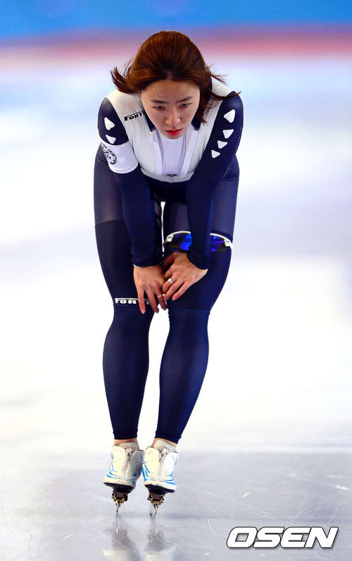 28일 오전 서울 노원구 태릉국제빙상장에서 열린 '제95회 전국 동계체육대회' 여자 일반부 1000m 경기를 마친 이상화가 숨을 고르고 있다.