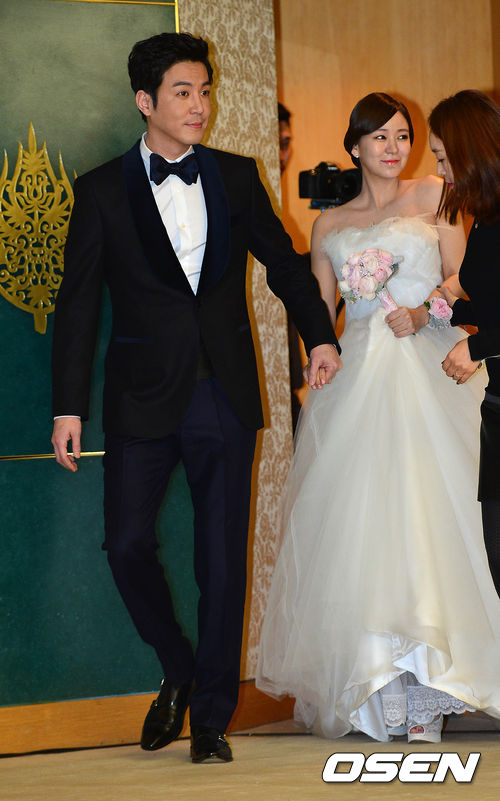 배우 최원영과 심이영이 28일 오후 서울 삼성동 코엑스 워커힐 그랜드볼룸에서 열리는 결혼식을 앞두고 진행된 기자회견에 참석하고 있다.