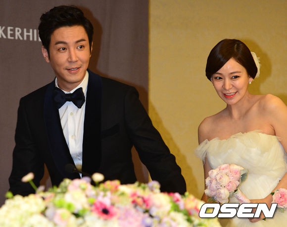 배우 최원영과 심이영이 28일 오후 서울 삼성동 코엑스 워커힐 그랜드볼룸에서 열리는 결혼식을 앞두고 진행된 기자회견에 참석하고 있다.