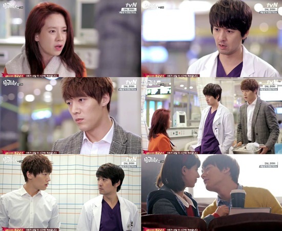 지난 2월 28일 방송된 '응급남녀'에서는 진희(송지효 분)을 사이에 두고 신경전을 펼치는 창민(최진혁 분), 천수(이필모 분)의 모습이 그려졌다.