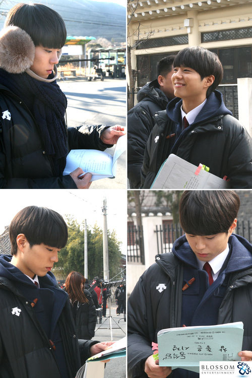 대본도 뚫을 듯 강렬한 눈빛에 교복차림까지 더한 그의 모습은 마치 열심히 공부 중인 수험생을 연상케 한다.