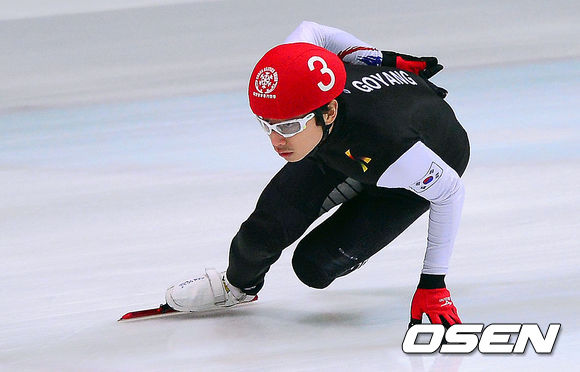 1일 오전 성남 탄천실내빙상장에서 열린 '제95회 전국 동계체육대회' 남자 일반부 1000m 곽윤기(빨간모자)가 역주하고 있다.