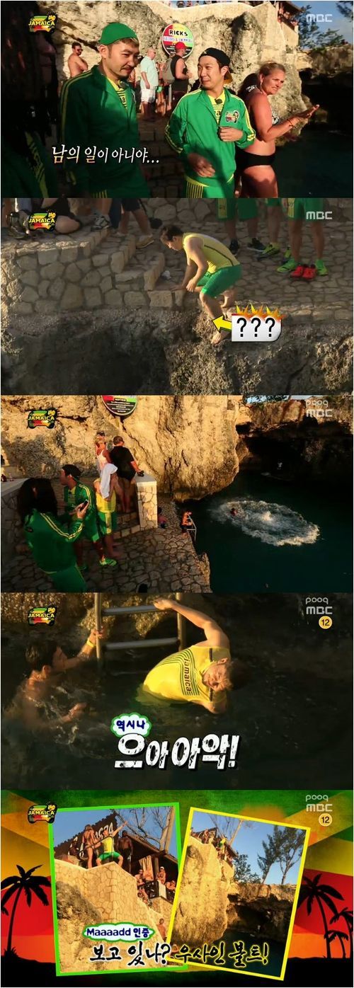방송인 정형돈과 노홍철이 우사인 볼트를 만나겠다는 일념 하에 암벽 다이빙에 성공했다.