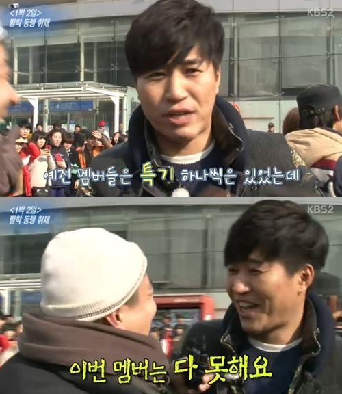 가수 김종민이 '1박2일' 시즌2와 시즌3의 멤버를 비교해 눈길을 끌었다.