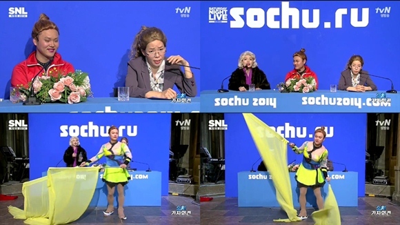 1일 오후 첫 방송된 케이블채널 tvN 'SNL코리아' 시즌5에서는 2014 소치올림픽 중 여자 피겨 스케이팅에서 금메달을 획득한 러시아의 소트니코바 선수에게 일침을 가했다.