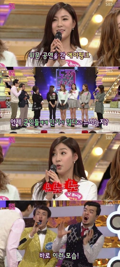 걸그룹 에이핑크의 하영이 '노노노(NO NO NO)'를 다같이 부르는 군인들의 목소리에서 인기를 실감한다고 밝혔다.
