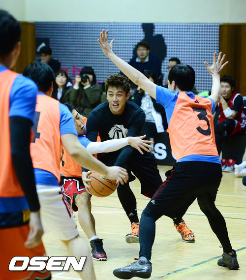 2일 오전 서울 성동구 금호동 열린금호교육문화관에서 열린 아디다스 로즈4.5 5 on 5 토너먼트 농구대회 'basketball is a team‘에서 배우 김혁이 돌파를 시도하고 있다.