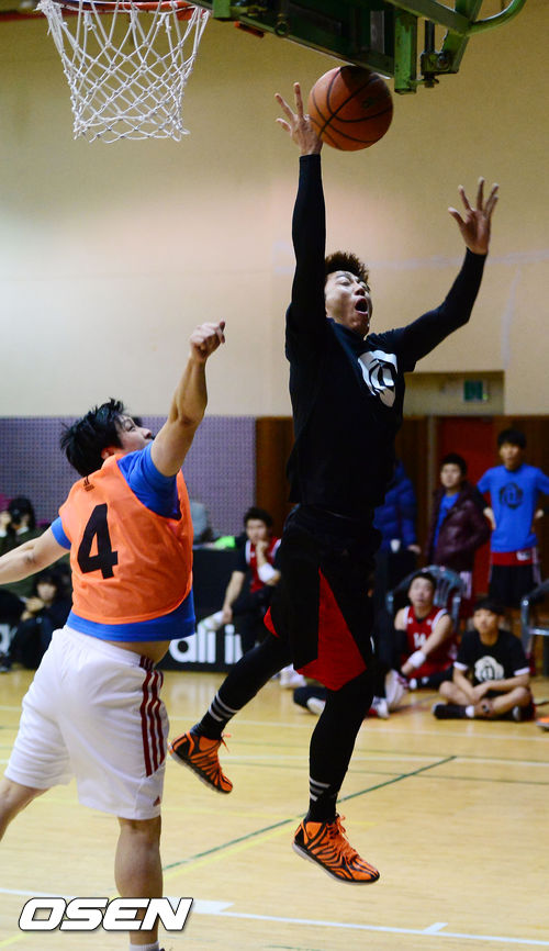 2일 오전 서울 성동구 금호동 열린금호교육문화관에서 열린 아디다스 로즈4.5 5 on 5 토너먼트 농구대회 'basketball is a team‘에서 배우 김혁이 경기에 임하고 있다.