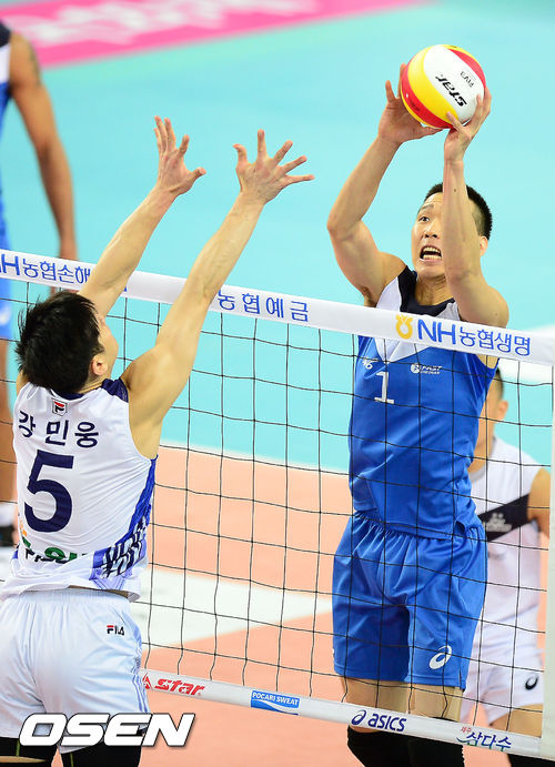 2일 오후 인천 계양체육관에서 열린 '2013-2014 NH농협 V리그' 남자부 대한항공 점보스와 현대캐피탈 스카이워커스의 경기, 현대캐피탈 임동규가 연타를 넣고 있다.