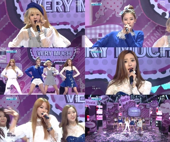베스티는 2일 오후 방송된 SBS 가요프로그램 '인기가요'에서 신곡 ‘땡큐 베리 머치(Thank you very much)’을열창하며 성공적인 컴백무대를 가졌다.